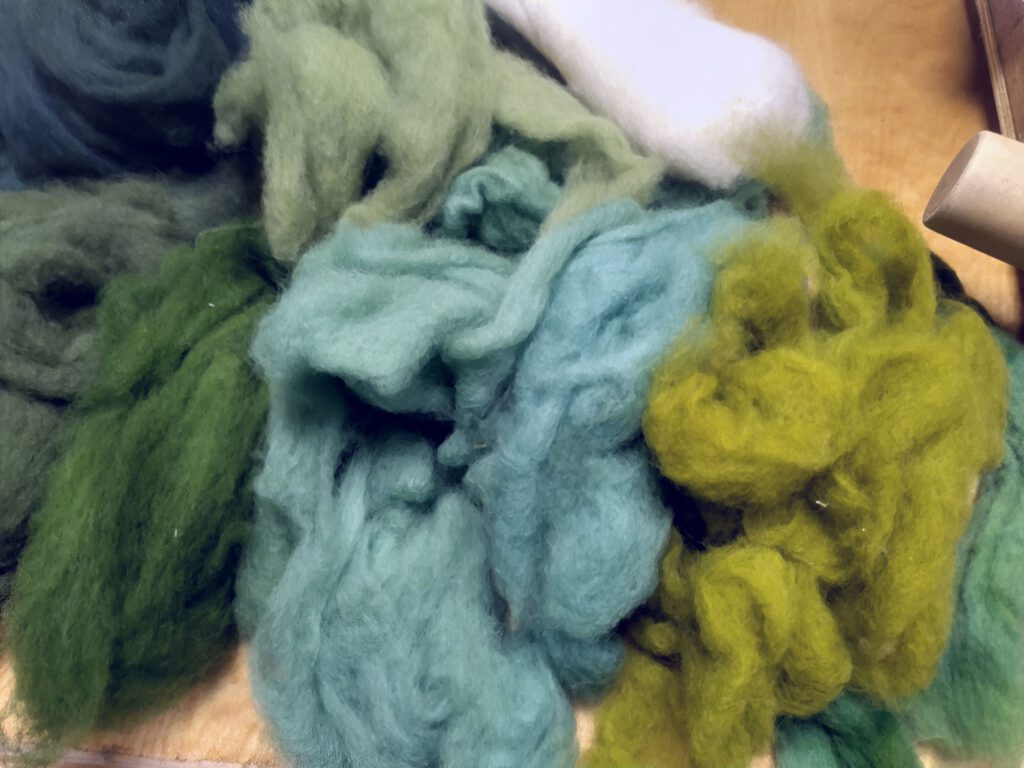Dabei war dann ganz schnell klar, dieses Grün gibt es nicht. Bei keinem meiner Wollhändler*innen ist ein wirklich gutes Kohlgrün zu haben. Und da ich gerade großes Glück hatte und von der Wollwerkstatt Pupeter (https://wollwerkstatt-pupeter.de/) eine Probe Kardenband vom Waldschaf bekommen habe, werde ich das halt färben.